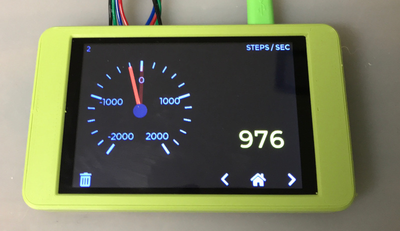 | Speed Dial | The speed dial shows the momentary stepper speed in full steps per second units. Forward speed is on the right side and backward speed is on the left. |